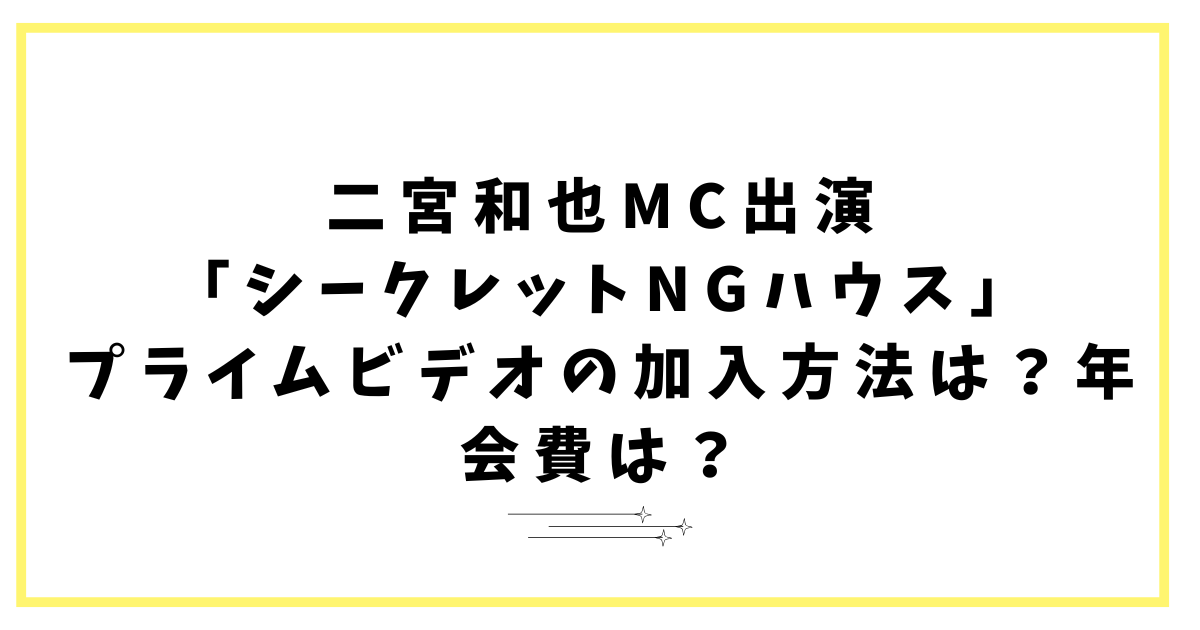 二宮和也MC出演「シークレットNGハウス」プライムビデオの加入方法は?年会費は?
